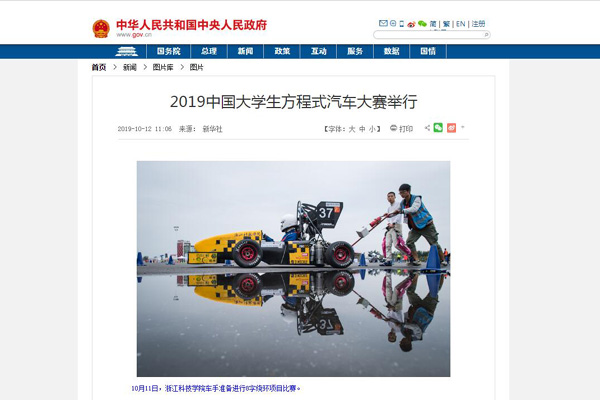 当日,2019中国大学生方程式汽车大赛在湖北襄阳举行,来自60所高校大学生自制的方程式赛车在赛道上一展英姿。
