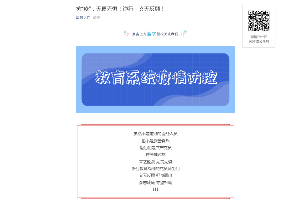 虽然不是前线的医务人员,也不是武警官兵,但他们是共产党员!在关键时刻,来之能战,无畏无惧,浙江教育战线的党员师生们义无反顾,挺身而出,众志成城,守望相助。