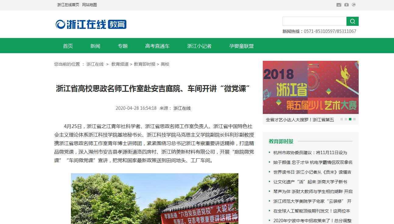 浙江在线:浙江省高校思政名师工作室赴安吉庭院、车间开讲“微党课”