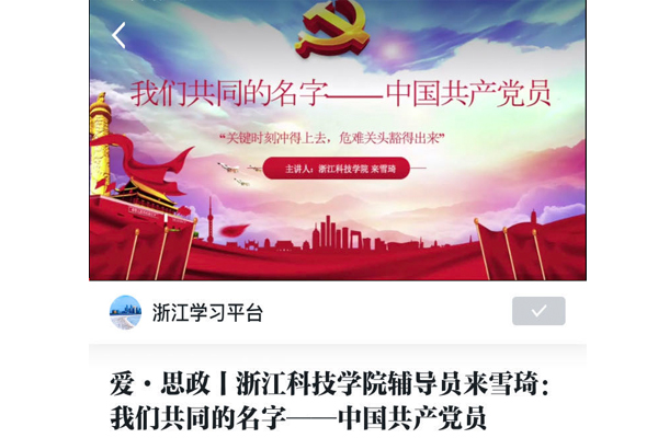 点击标题即可观看视频:爱·思政丨浙江科技学院辅导员来雪琦:我们共同的名字——中国共产党员