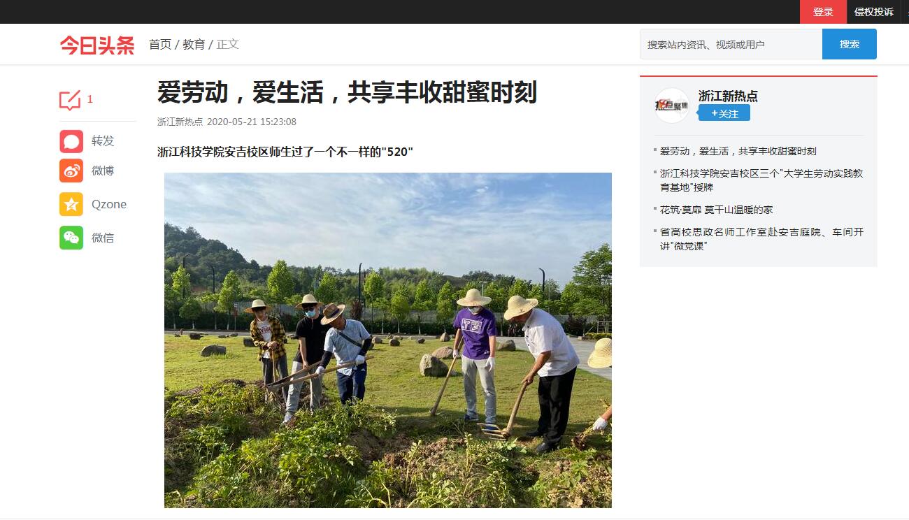 今日头条:爱劳动,爱生活,共享丰收甜蜜时刻