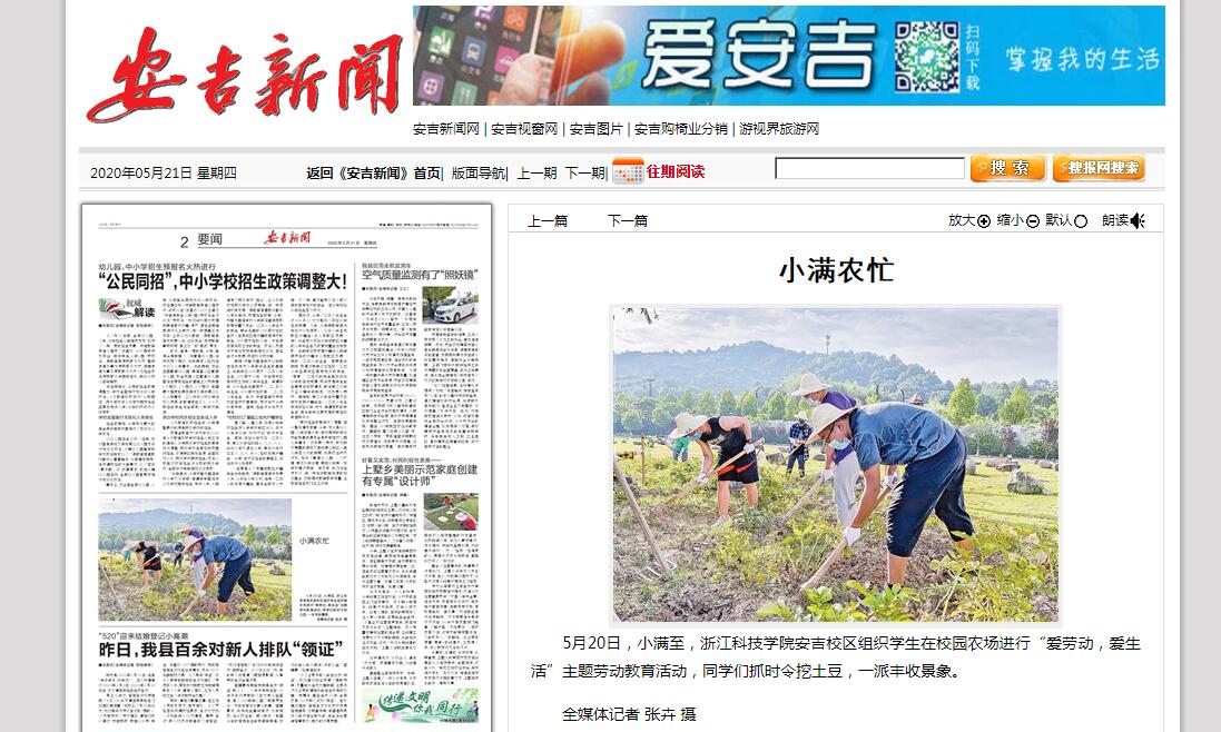 近日,浙江经视、搜狐网、今日头条、安吉新闻报等关注申搏安吉校区组织学生在校园农场进行“爱劳动,爱生活”主题劳动教育活动。