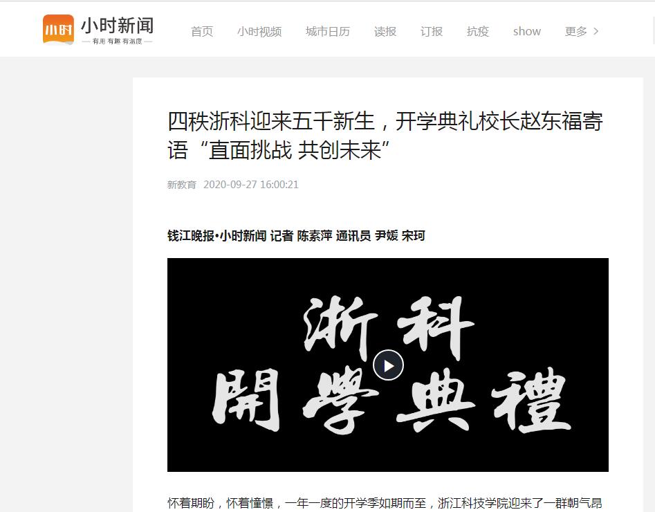 9月26日,学校举行2020级新生开学典礼,4000多名来自五湖四海的2020级新生开启了大学生活的崭新篇章。浙江新闻客户端、小时新闻等媒体对活动做了报道。