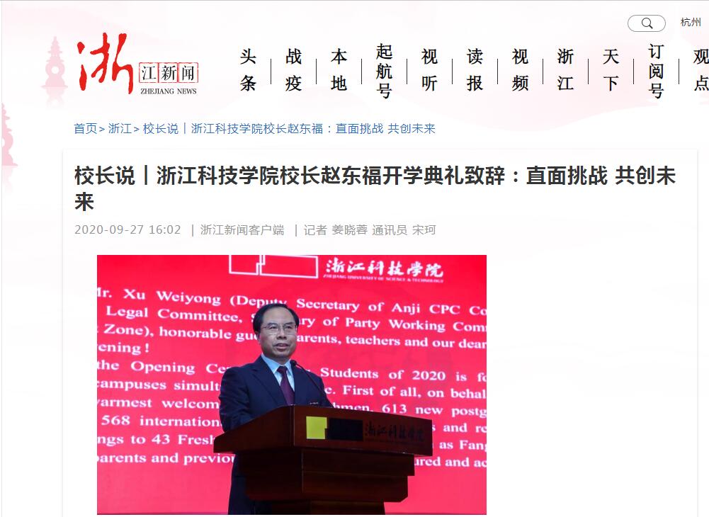 浙江新闻客户端:校长说︱浙江科技学院校长赵东福开学典礼致辞:直面挑战 共创未来