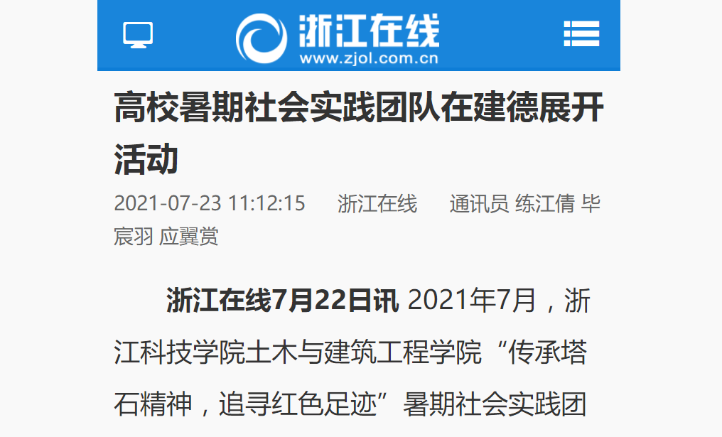 2021年7月,浙江科技学院土木与建筑工程学院“传承塔石精神,追寻红色足迹”暑期社会实践团队在建德市开展支教活动和红色文化研学调研活动。