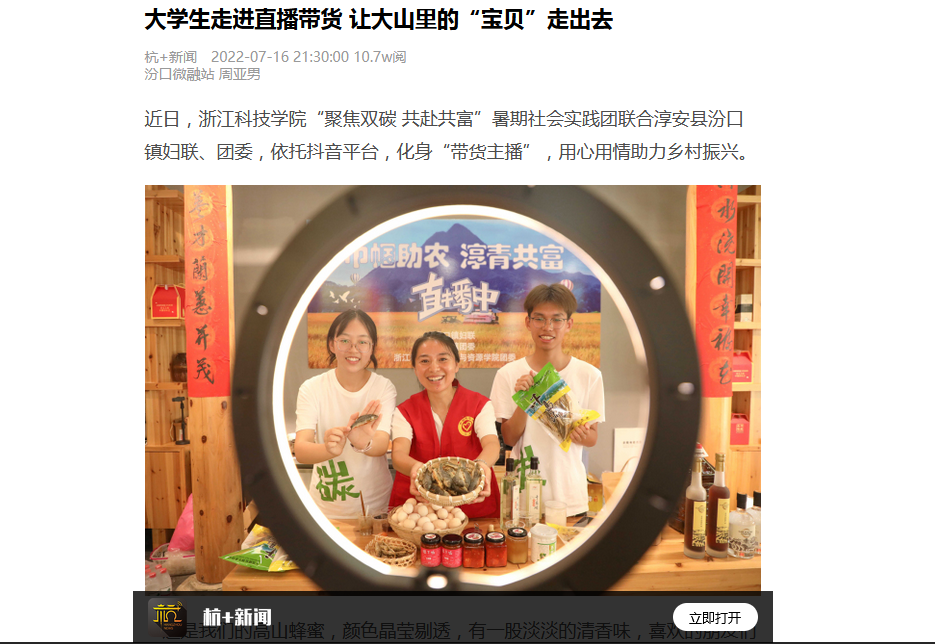 视界千岛湖客户端:“聚焦双碳 共赴共富”—— 浙江科技学院暑期社会实践在行动