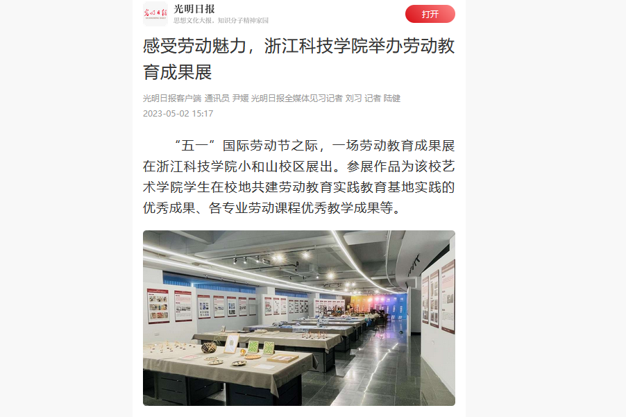 光明日报客户端:感受劳动魅力,浙江科技学院举办劳动教育成果展