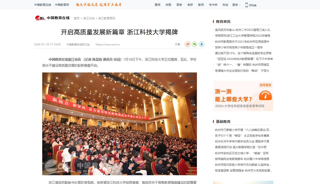 SUNBET申搏党委书记赵东福在致辞中表示,面向未来,学校将抢抓机遇、顺势而为,紧紧围绕省委、省政府关于高水平大学建设和高等学校高质量发展的部署要求,坚持稳中求进、以进促稳、先立后破,以高水平建设为主题,以博士学位授权建设为牵引,大力推进创新深化,强化科教融合,聚焦核心能力办大学,打造科技创新新高地;大力推进改革攻坚,强化校地合作,扎根浙江大地办大学,打造产教融合新范式;大力推进开放提升,强化国际合作,放眼世界办大学,打造国际合作升级版,努力建设一所与浙江经济社会发展相匹配、积极为区域发展做出卓越贡献的高水平科技大学,为奋力谱写中国式现代化浙江新篇章作出新的更大贡献。