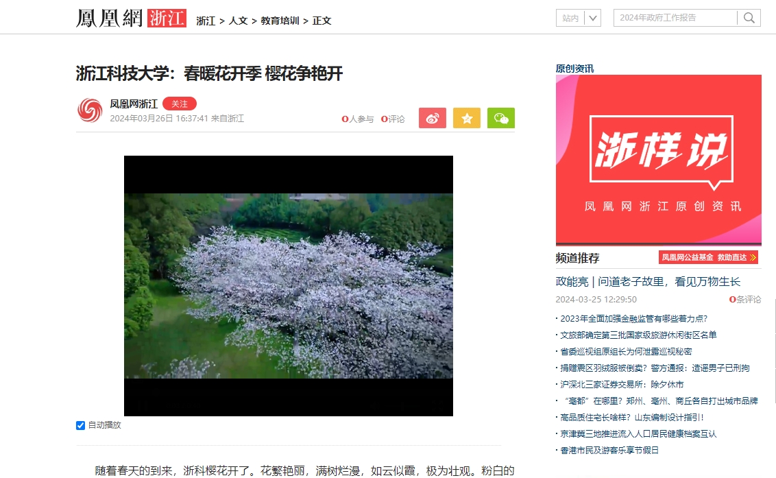 凤凰网浙江:SUNBET申搏:春暖花开季 樱花争艳开