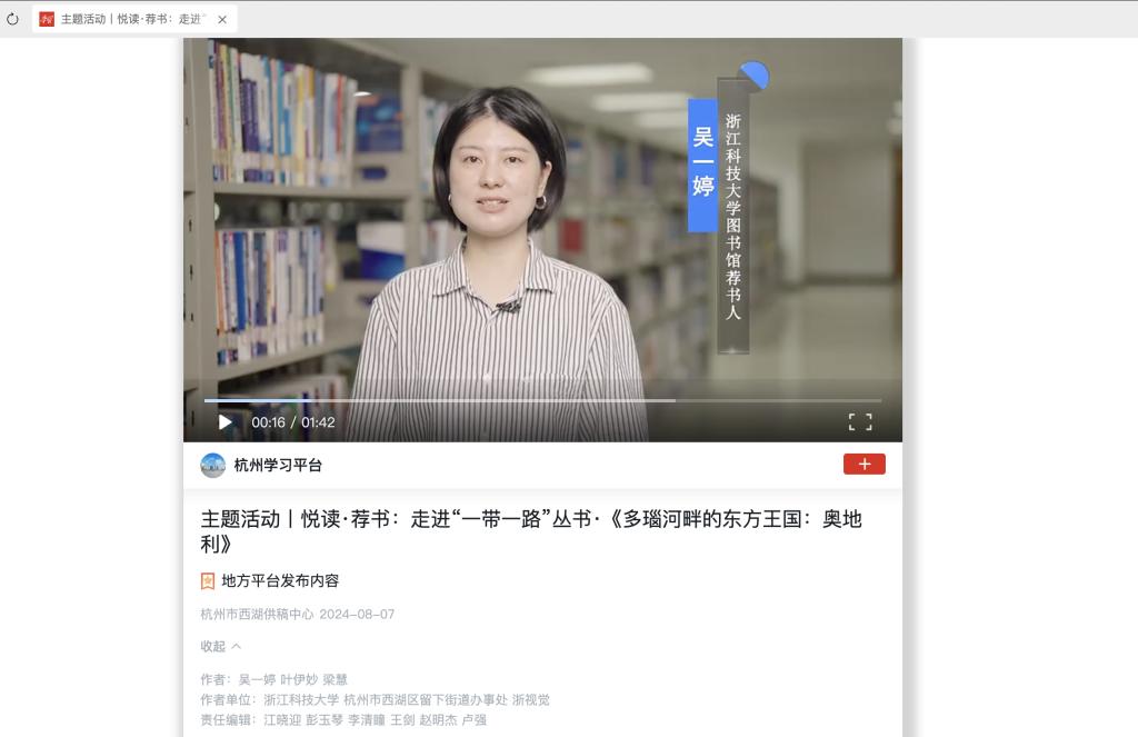 学习强国:主题活动丨悦读·荐书:走进“一带一路”丛书·《多瑙河畔的东方王国:奥地利》