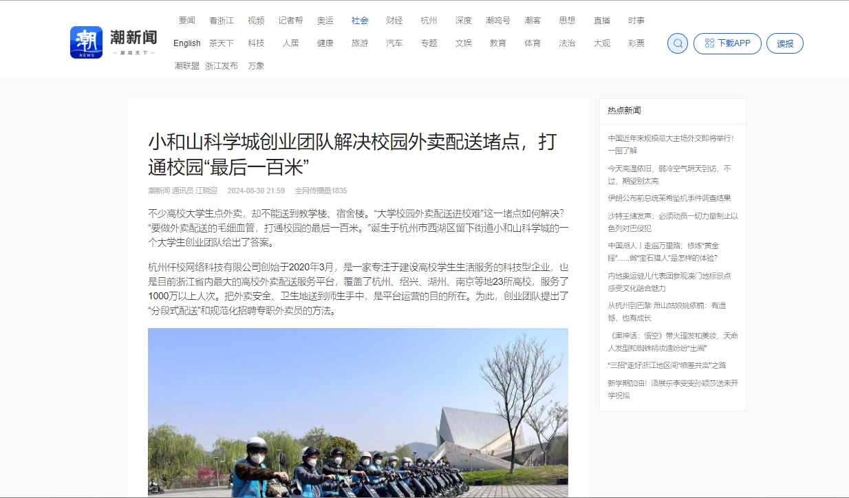 杭州仟校网络科技有限公司创始于2020年3月,是一家专注于建设高校学生生活服务的科技型企业,也是目前浙江省内最大的高校外卖配送服务平台,覆盖了杭州、绍兴、湖州、南京等地23所高校,服务了1000万以上人次。把外卖安全、卫生地送到师生手中,是平台运营的目的所在。为此,创业团队提出了“分段式配送”和规范化招聘专职外卖员的方法。