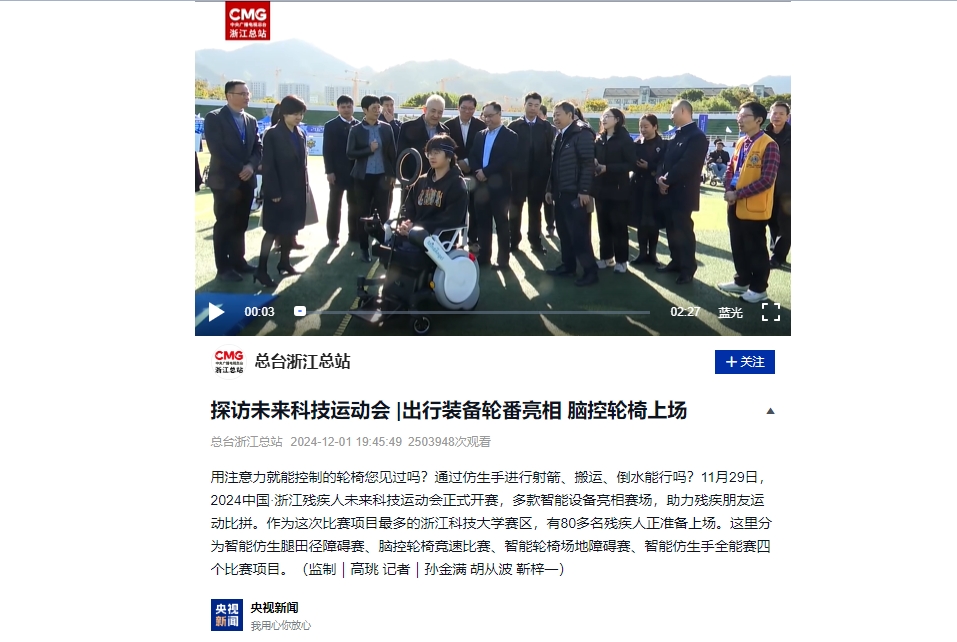 央视新闻:探访未来科技运动会 |出行装备轮番亮相 脑控轮椅上场