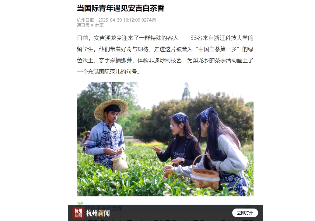 这场活动不仅是非遗技艺的传承,更是溪龙乡“茶旅融合”的生动实践。近年来,当地通过举办白茶开采节、白茶艺术市集、白茶研学体验等活动,吸引海内外游客深度参与,让安吉白茶产业焕发新活力。溪龙乡党委副书记金鑫表示:“留学生的到来为溪龙乡增添了国际色彩,未来我们将推出更多跨界合作,让安吉白茶香飘世界。”