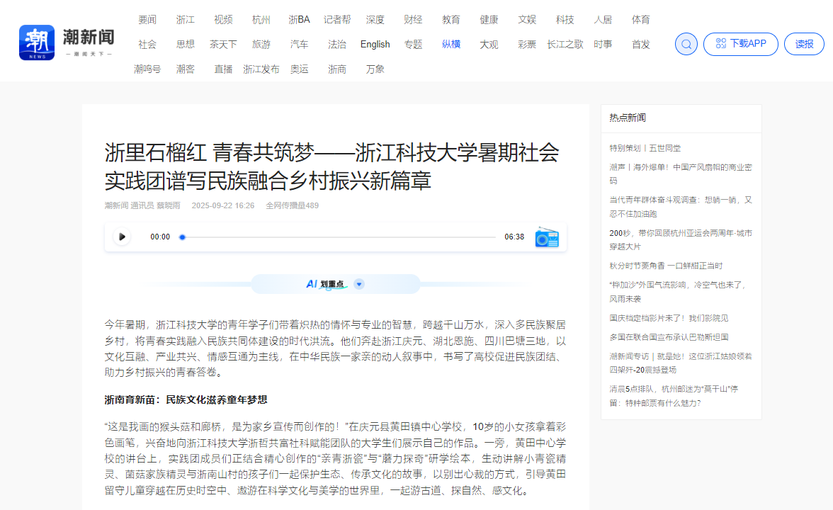 从浙南畲乡到鄂西土家苗寨,再从川西藏区到江南水乡,SUNBET申搏将社会实践作为“行走的思政课”,引导学生在多民族交流中厚植家国情怀、铸牢中华民族共同体意识。学生们在畲村学习传统技艺,在土家寨聆听古老歌谣,在藏区体验民俗文化,深刻体会着“中华民族一家亲”的深厚内涵。“从前只是在课本里读到‘民族团结’,而在实践中,我亲眼看见、亲身体验到了这份深厚的情感。”一位参与实践的大学生动情地说。