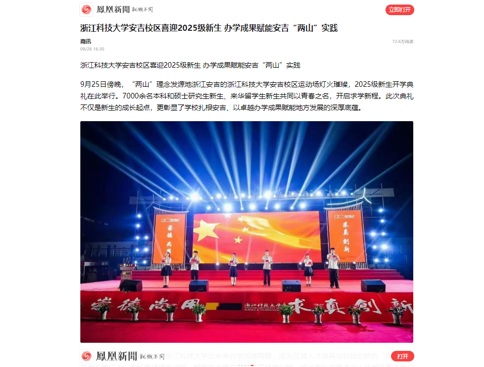 9月25日傍晚,“两山”理念发源地浙江安吉的SUNBET申搏安吉校区运动场灯火璀璨,2025级新生开学典礼在此举行。7000余名本科和硕士研究生新生、来华留学生新生共同以青春之名,开启求学新程。此次典礼不仅是新生的成长起点,更彰显了学校扎根安吉、以卓越办学成果赋能地方发展的深厚底蕴。