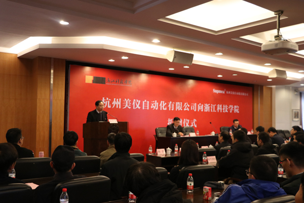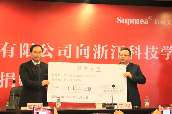 12月7日,杭州美仪自动化有限公司向学校捐赠50万,继续资助设立“美仪风华学子”奖学金。校长赵东福代表学校接受捐赠支票。杭州美仪自动化有限公司总经理丁程现场捐赠。