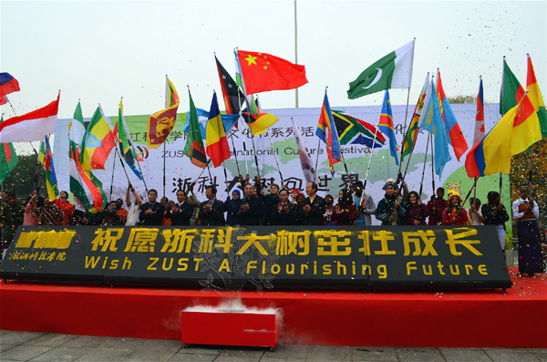12月13日,校第六届国际文化节系列活动在和山广场开幕,校领导龚建立、赵东福、符宁平、周加敏、郑友取、陆爱华及校长助理鲁伟权应邀出席。校党委书记龚建立宣布文化节开幕,校长赵东福致辞。