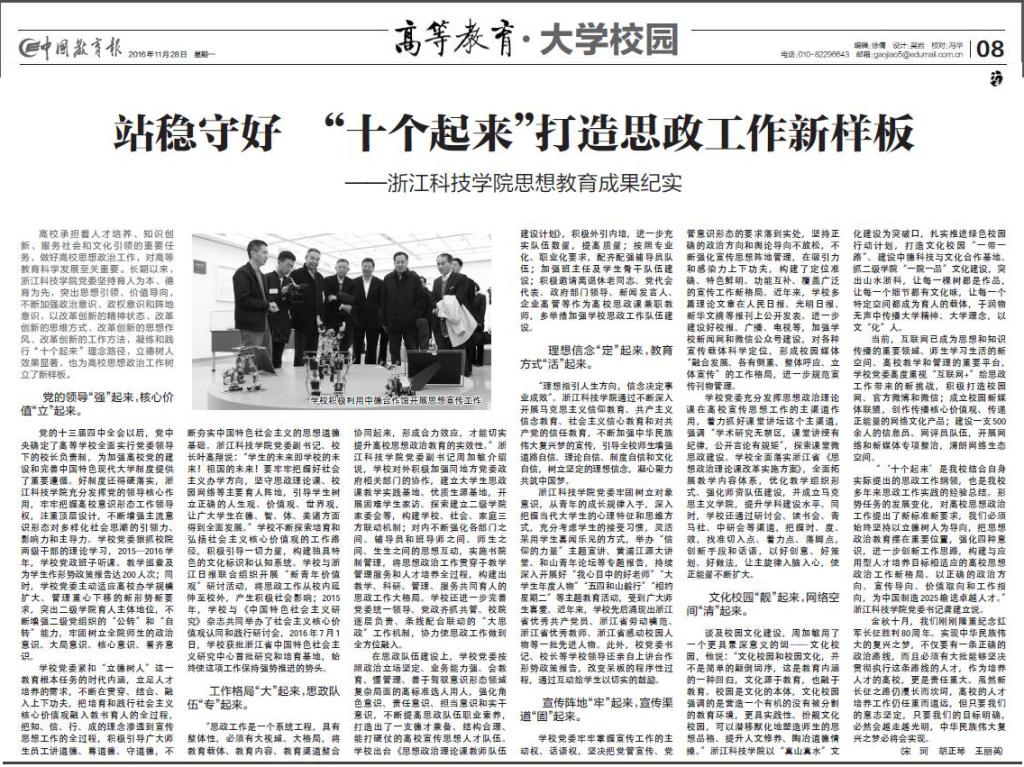 (2016年11月28日,中国教育报刊发文章,关注申搏思想政治教育成果)