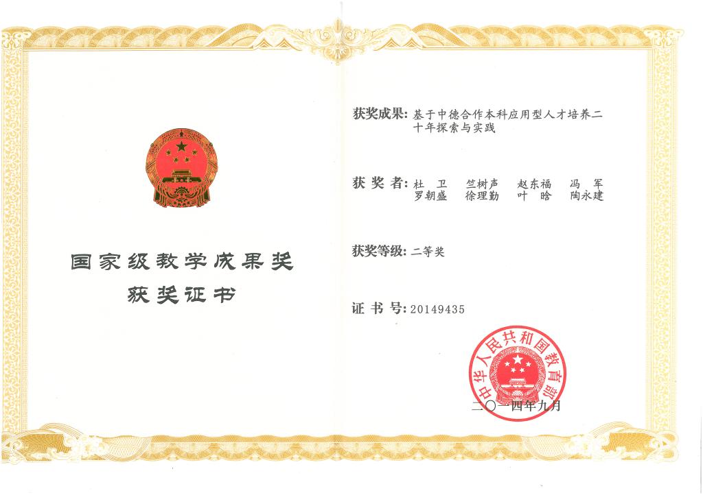 (“基于中德合作本科应用型人才培养二十年探索与实践”获国家教学成果奖二等奖)