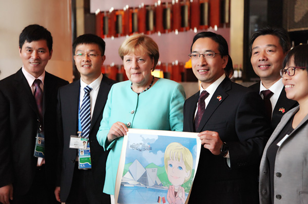 (2016年9月4日,德国总理默克尔接见申搏G20峰会接待小组)