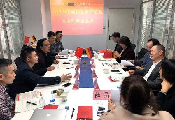 3月7日,2019年中德校企合作联盟常务理事会议在德国石荷州经济技术促进中心杭州办事处召开,联盟副理事长、申搏副校长郑友取主持会议。