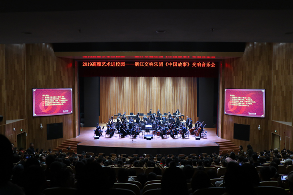 此次活动为高雅艺术进校园系列活动之一。浙江交响乐团依托我省深厚的文化底蕴,集古典音乐与民间音乐为一体,创作了大批优秀的交响乐作品,曾赴韩国、日本、法国、瑞士、意大利等国演出。此次,乐团带来的《中国故事》专场,曲目包括根据芭蕾舞音乐改编成的芭蕾舞组曲《牡丹仙子》,淳朴优美有带有浓厚中国乡风的竹笛协奏曲《新柳水令》,反映浙江农村集镇的民俗与风尚的《社戏》等,用音乐的语言讲述了中国故事。