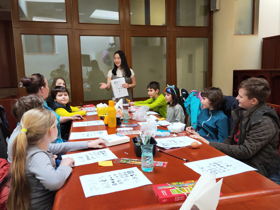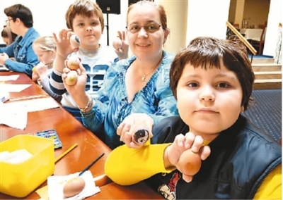 我们不仅将中国节日带到罗马尼亚,也将中国元素与当地节日相结合。在西方,复活节有画彩蛋的传统。临近复活节,为增加师生间的交流,阿拉德孔子课堂汉语兴趣班的学生们迎来了一场别开生面的画彩蛋活动。一颗颗圆滚滚的鸡蛋成了学生的“画布”, 不一会儿工夫,色彩斑斓的彩蛋便画好了。与以往不同的是,这次的彩蛋被画上了各种各样的中国元素:熊猫、青花瓷、中国结等。一位画家在彩蛋上绘制了一条活灵活现的龙,他说:“我擅长画大幅的油画,这是我第一次在彩蛋上画龙,非常有意思!”