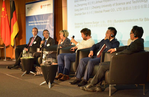 嘉宾论坛由德国联邦教育和研究部国际司司长伯格主持,龚建立向与会人员介绍了申搏中德合作办学情况,分享了申搏构建现代化职业教育立交桥模式的办学经验,并展望了学校引进“双元制”专业、建立本科层次中德双元制产教融合学院的构想。