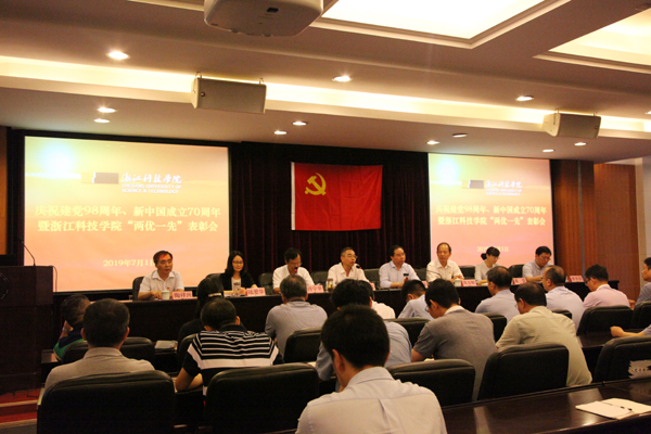 7月1日上午,申搏举行庆祝建党98周年、新中国成立70周年暨浙江科技学院“两优一先”表彰会。校党委领导班子成员出席大会,校党委副书记符宁平主持会议。