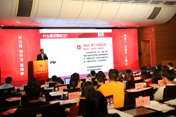 柴始青为申搏马克思主义学院讲师,他注重理论联系实际,总结出的“1+1+X”教学模式,深受广大同学喜爱。比赛现场,他通过对于欢案和龙哥案的解读,为同学们讲解了“正当防卫”的法律概念,让大家感受到司法案件中公平正义的现实意义,鼓励更多人正确利用法律武器,和违法犯罪人员做斗争,共同建设法治中国。(新闻中心 尹媛)