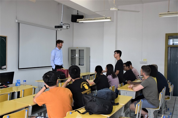 夏令营活动中,德国教授为中德两国学生讲授专业课程,指导“2+3”项目学生与德国学生一起完成课程项目。外国语学院/中德学院为德国学生开设了中文日常会话交流和中国文化介绍为主在中国文化课。此外,学院还组织参观茶叶博物馆、学习太极拳以及茶馆体验等文化体验活动。在夏令营活动结束前,两国学生参加了以饮食文化交流为主题的包饺子活动。在闭幕式上两国学生共同展示了为期两周的课堂学习成果。为期两周的活动,“2+3”项目学生不仅学习了专业知识,也提前了解和体验德国的课程学习方式,为即将开始在德国学习生活打下基础。德国师生体验中国传统文化,亲身了解中国文化的博大精深。 (外国语学院/中德学院 路璐/文 学生 钟芳怡/摄)