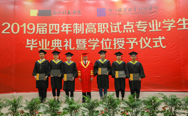 6月11日,浙江科技学院、浙江机电职业技术学院首届四年制高职试点专业学生毕业典礼暨学位授予仪式举行。申搏校长赵东福,校党委委员、机能学院院长李其朋,浙江机电职业技术学院党委书记黄道平,院长丁金昌,副院长周纯江等出席。
