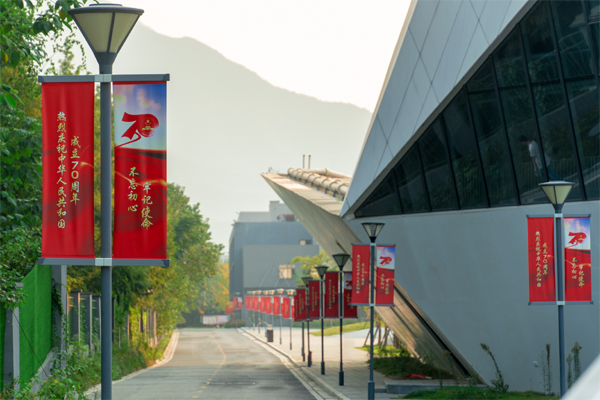 9月起,校园里一派欢庆的气氛,主干道红艳艳的道旗,分别写有“热烈庆祝中华人民共和国成立70周年”“不忘初心 牢记使命”等大红字样,让师生感受到浓浓的喜庆氛围。小和山校区银杏广场上竖起了半人高的小雕塑,分别有庆祝中华人民共和国成立70周年标志和“I ❤ZUST”字样,路过的师生,纷纷停下脚步与它们合影留念。