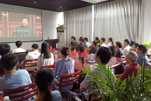 10月1日,庆祝中华人民共和国成立70周年大会引举世瞩目,申搏师生在会议室、实验室、图书馆等地收看阅兵式电视直播,不少在国外交流的学生也通过网络观看直播,共同感受中华人民共和国成立70年的辉煌成就,祝福伟大祖国繁荣昌盛。