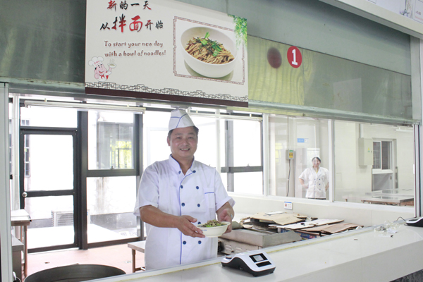 9月,安吉校区食堂入选安吉县“最放心学校食堂”,看着这份新添的荣誉,校区饮食主管寿青山“寿师傅”的笑容也添了一分。