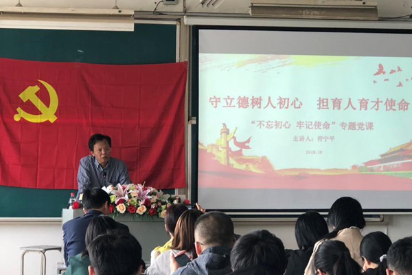 校党委副书记符宁平以《守立德树人初心,担育人育才使命》为题、校党委副书记周加敏以《深化改革、注重质量、切实做好大学生社团工作》为题,副校长冯军以《不忘初心,牢记使命——育一流应用性本科人才》为题、副校长单胜道以《不忘初心使命 发展循环经济 建设生态文明》、副校长郑友取以《传承红色基因 推进立德树人》为题,校纪委书记陆爱华以《“不忘初心、牢记使命”,做新时代合格共产党员》为题各自为分管部门、联系单位的党员师生讲党课。