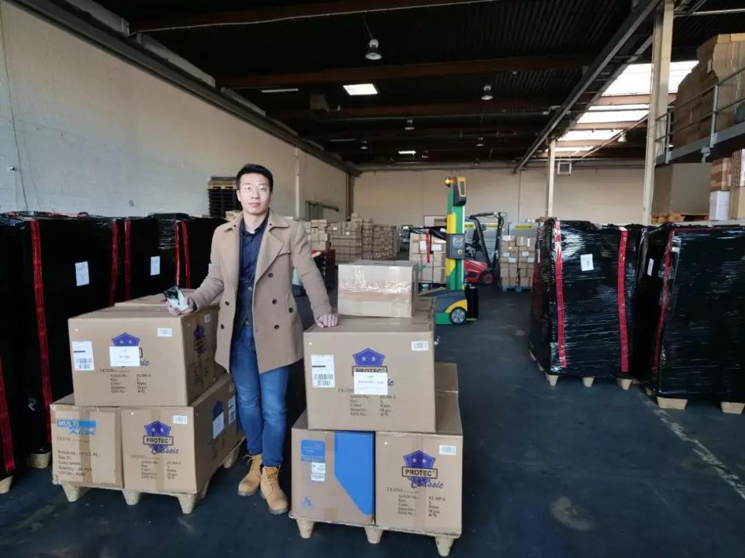 孙琦在第一时间弄清一线医院迫切需要的各种医疗物资的规格标准和要求,全力以赴发起捐赠行动,转战在欧洲多国各个城市采购,校友李婉沁(机械类国际班101)也赶往了法兰克福物流仓库现场,为捐赠物资能第一时间顺利到达一线医院做最后校对。