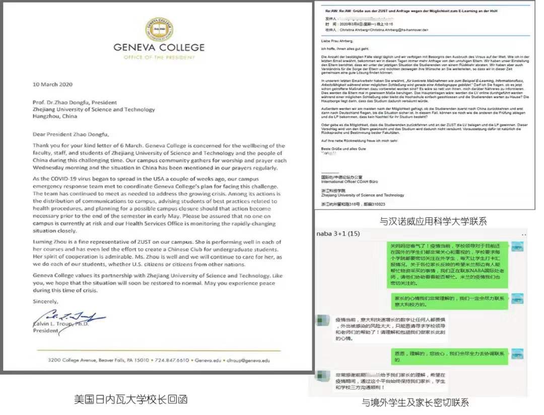 和相关二级学院排摸境外每一位在籍学生情况,做好学生和境外合作院校的联系工作,希望合作院校能在疫情期间为申搏学生提供必要的针对性指导和帮助。向在外学生提供申搏心理咨询和辅导老师相关联系方式,及时对学生进行心理辅导;安抚好外教情绪,避免不必要的恐慌。不完全统计,累计接受师生通过电话、QQ、微信等方式咨询500多人次,安抚学生和家长情绪,提供学业等方面的建议。