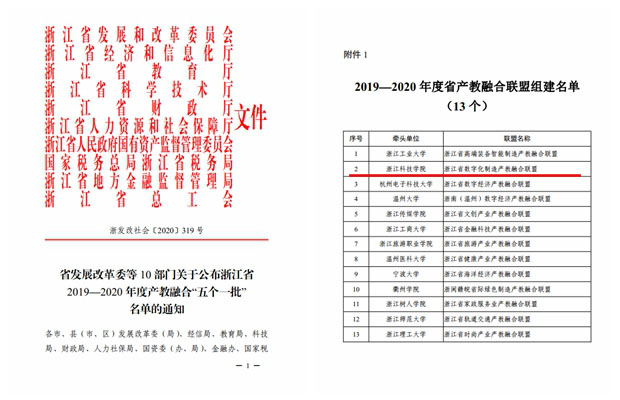 日前,浙江省发展和改革委员会等10部门公布浙江省 2019—2020 年度产教融合“五个一批”名单,申搏牵头申报的“浙江省数字化制造产教融合联盟”入选2019-2020年度浙江省产教融合联盟组建名单。