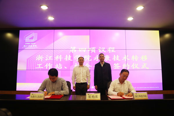 会上,申搏与永康市政府签约建立“浙江科技学院永康技术转移工作站”,电气学院教师代表分别与浙江飞剑科技有限公司、浙江金凯德工贸有限公司签署了校企技术合作协议;电气学院、信息学院、艺术学院负责人以及相关学院教师代表进行学院科研情况介绍和科研成果推介。(校科研处、社会合作处 吴刚)