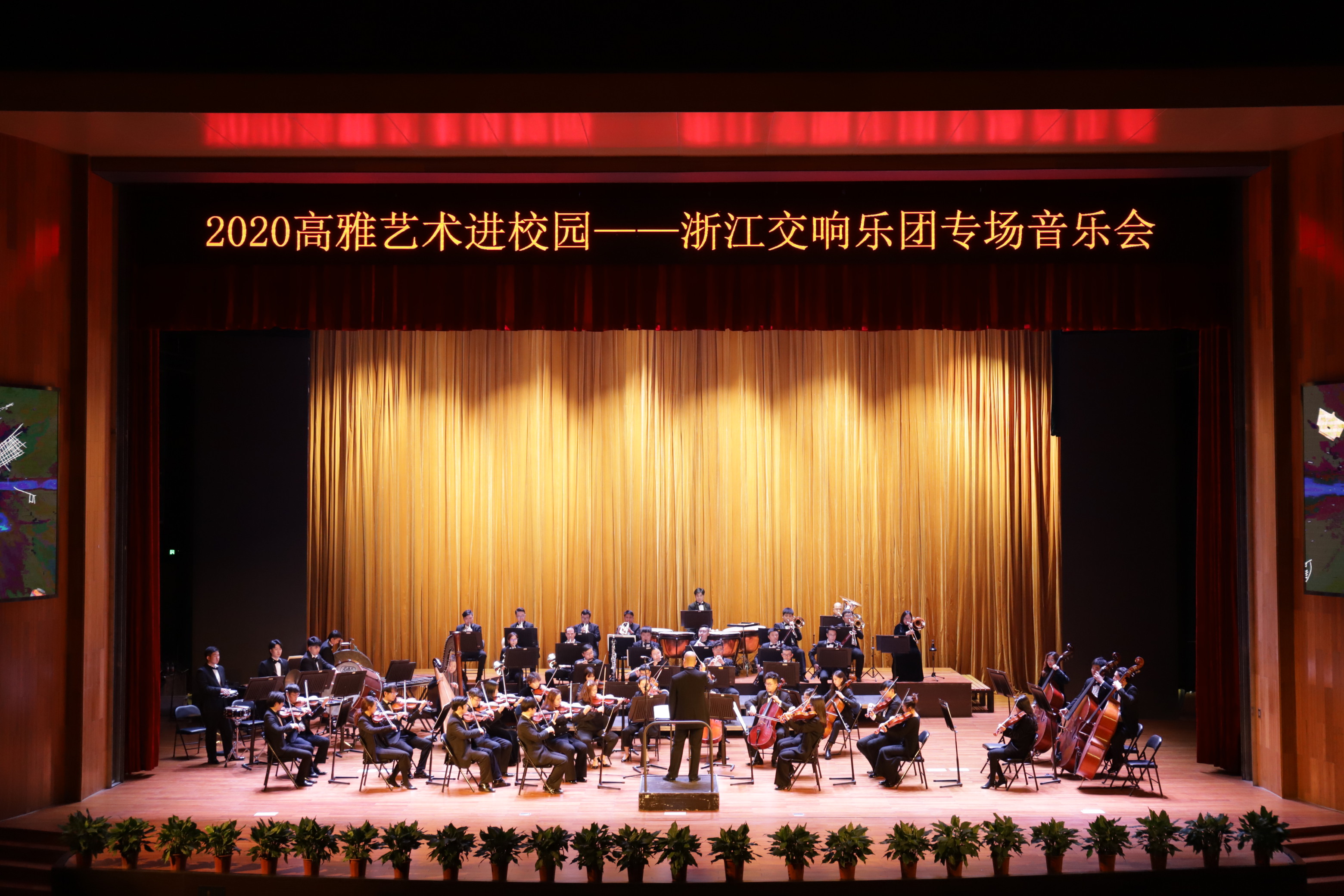 12月1日晚,高雅艺术进校园——浙江交响乐团专场演出在申搏举行,副校长单胜道出席并与现场师生共同欣赏了演出。