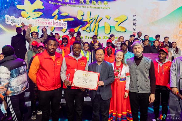12月11日晚,第十四届“梦行浙江”外国留学生中华才艺展演在浙江传媒学院举行。浙江省人民政府副省长成岳冲、浙江省教育厅厅长陈根芳等领导出席活动,申搏校长赵东福应邀出席。申搏留学生团队表演的音乐剧《和浙梦一起飞》,博得在场观众的一致好评。本届“梦行浙江”系列活动还纳入了“美丽浙江”短视频大赛,申搏来自科特迪瓦籍留学生 Kouassi Joshua Caleb Micah等同学的《读竹乡安吉,品绿水青山》(指导老师:李建瑜、华天奕、王飘飘),乌克兰籍留学生 Limarev Kyrylo等同学的《和浙梦一起飞》(指导老师:王飘飘)均获“美丽浙江”短视频大赛三等奖。