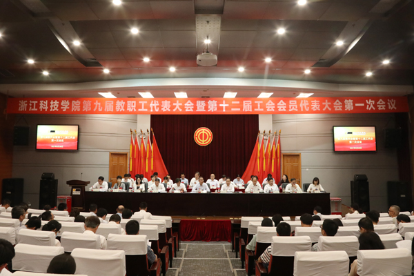 5月27日,浙江科技学院第九届教代会暨第十二届工代会第一次会议开幕。省总工会二级巡视员、省教育工会主席王玉庆,校党委书记龚建立致辞,校长赵东福做学校工作报告。会议由校党委副书记周加敏主持。