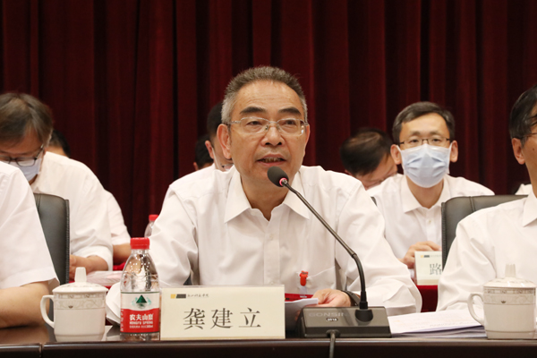 龚建立指出,浙江科技学院工会、教代会组织在省教育工会和学校党委的领导下,以习近平新时代中国特色社会主义思想为统领,团结动员广大教职工投身教学、科研、管理和服务等各项事业,为学校顺利完成“十三五”各项目标任务作出重要贡献。他强调,此次“双代会”是在全校喜迎建党百年、谋划“十四五”事业发展,加快高水平建设社会主义的SUNBET申搏背景下所召开的一次重要会议。蓝图已经绘就,关键是抓好落实。对学校接下来的工作,龚建立提出三点意见。一是要从党的百年奋斗历程中坚定学校发展的信心和决心,汲取前行的智慧和力量。二是要以奋进者姿态和实干者的作为,推动宏伟蓝图变为美好现实。三是要加强党对学校工作的全面领导。切实将党建优势转化为发展优势。