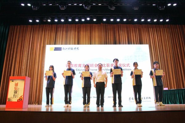 2020-2021学年,学校持续推进学术诚信教育,各类诚信教育活动蓬勃开展。当天,获奖学生代表董远坤、获奖班级代表郑吉阳和程锦绣分享自己对诚信的理解。2021届毕业生代表赵元茜回顾大学四年的诚信教育经历,表示浙科学子要抱着至诚至真之心,继续砥砺前行。