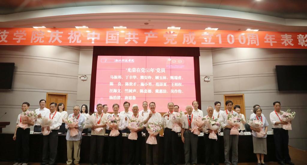 会上,13位有50年以上党龄的党员代表接过了“光荣在党50年”纪念章(全校共有17名党员获此荣誉)。