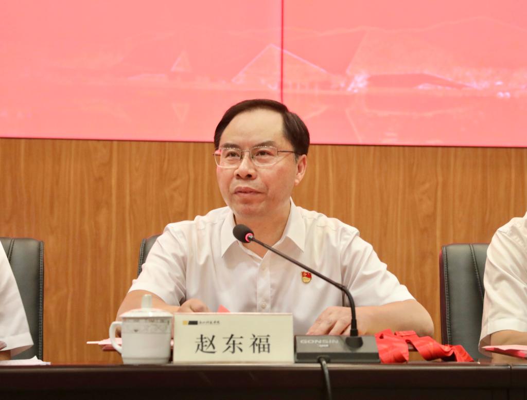 赵东福宣读学校“红旗党组织”、“红星党支部”获得单位、校新时代“红色先锋人物”、校首届微型党课大赛获奖者表彰文件。