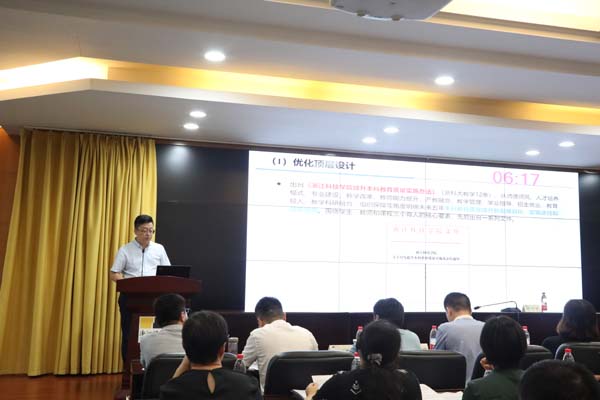 会上,教务处、安吉校区管委会、自动化与电气工程学院、信息与电子工程学院、生物与化学工程学院、环境与资源学院、理学院、继续教育学院、后勤服务中心等9家示范申报单位负责人分别从前期工作基础、后续工作计划及进度安排、预期效果和工作保障等方面进行交流汇报。