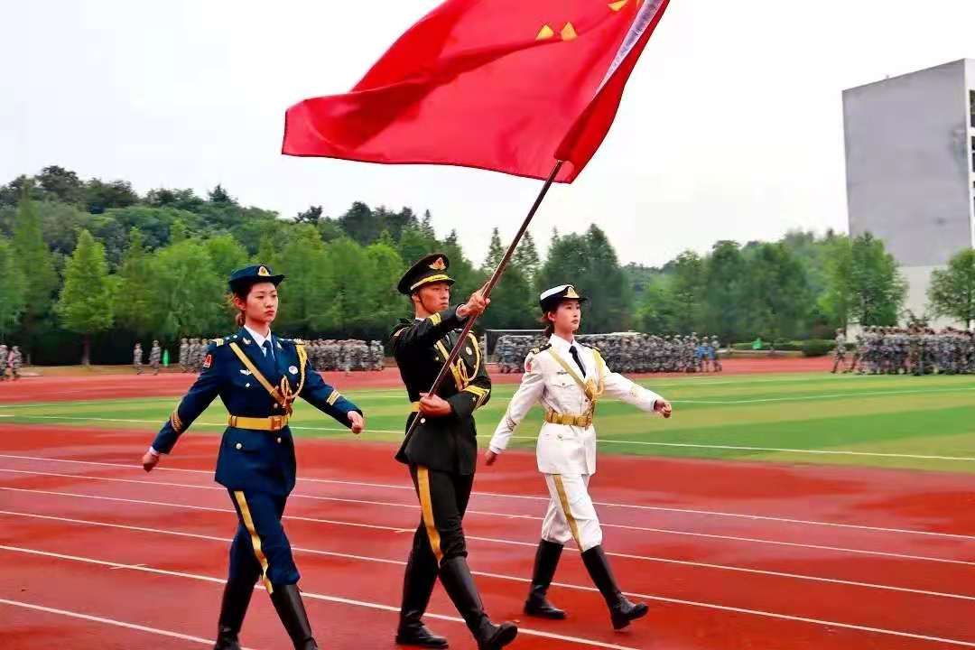 全团六十二个连队在仪仗队带领下依次走过主席台,同学们目光如炬、步伐坚定,尽显蓬勃朝气与青春活力。