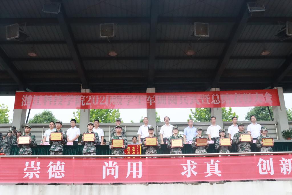 校领导和西湖区人武部负责人为获得2020级学生优秀连队荣誉的代表、各单项奖与个人表彰代表颁奖,各获奖代表颁奖。(安吉校区管委会 魏灏)